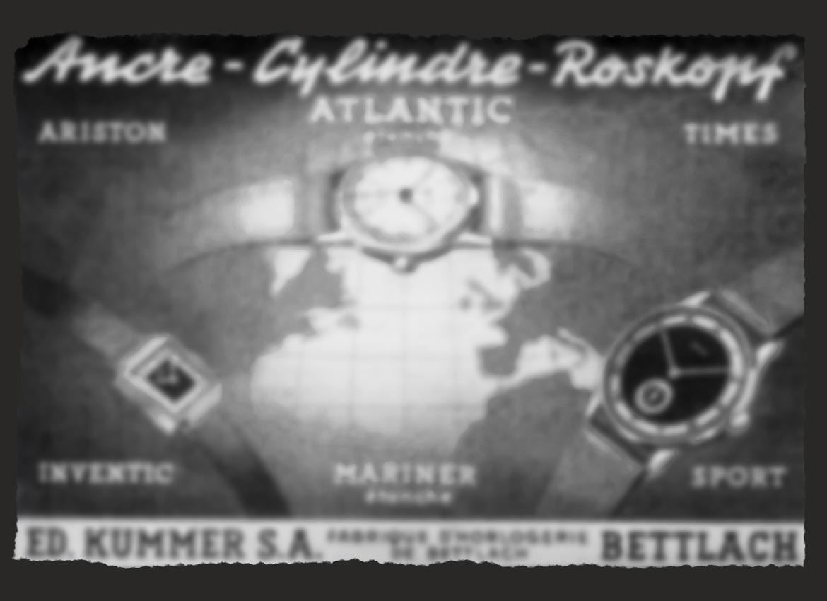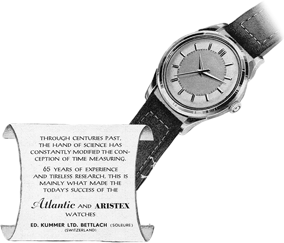 Szwajcarskie zegarki Atlantic powstały dzięki wierzącemu w siłę przemysłu zegarmistrzowi, Eduardowi Kummerowi. Pierwszą nazwę, EKB (Eduard Kummer Bettlach), zmieniono w roku 1952 na obecną nazwę ATLANTIC, by zachować spójność z logiem firmy. Logo stanowią kotwica i cyrkiel, składające się w literę A. Sam napis “Atlantic” zmieniał się na przestrzeni lat. Na jego podstawie można często określić datowanie konkretnego modelu.